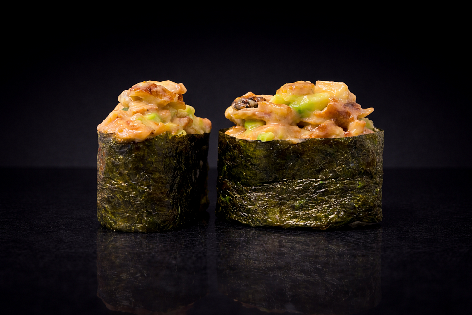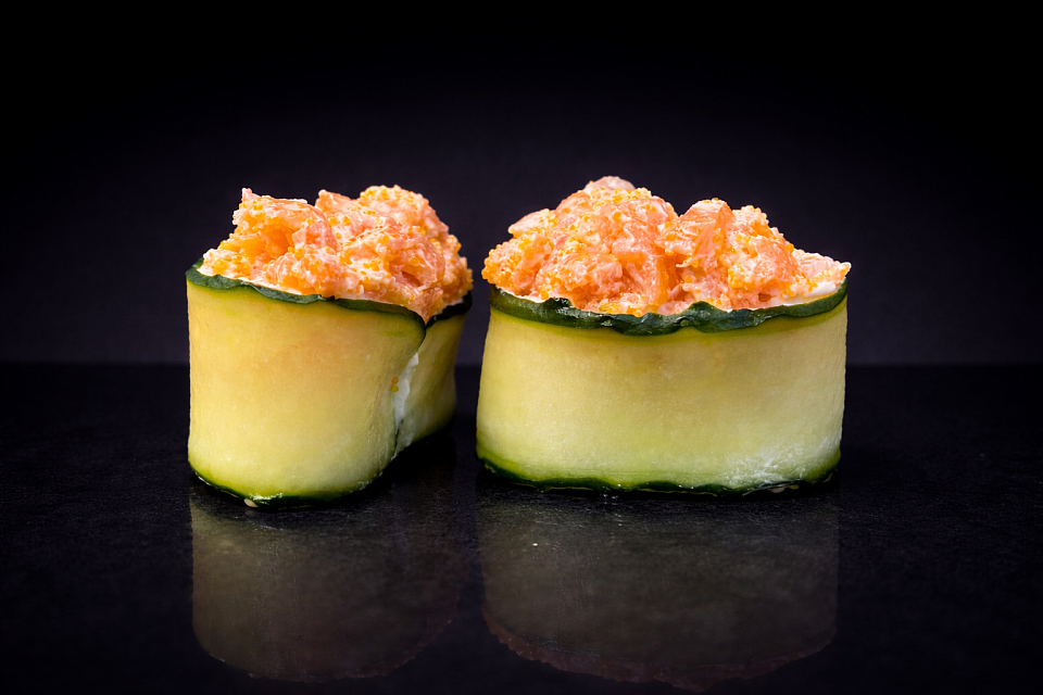 arroz, salmón, queso de Filadelfia,, masaga, pepino