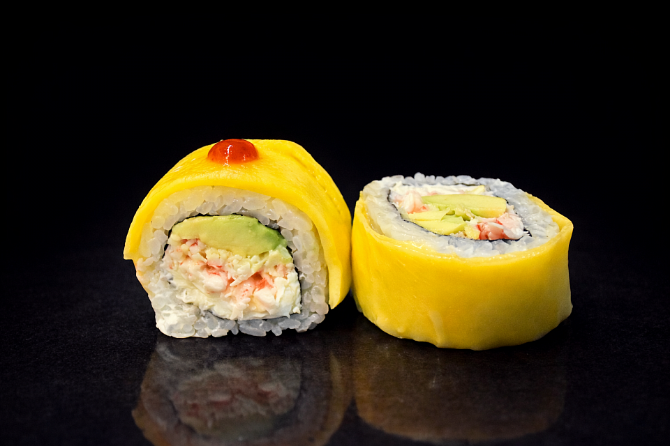 arroz,nori,aquacate,queso de Filadelfia,surimi,mango,shuriyacha